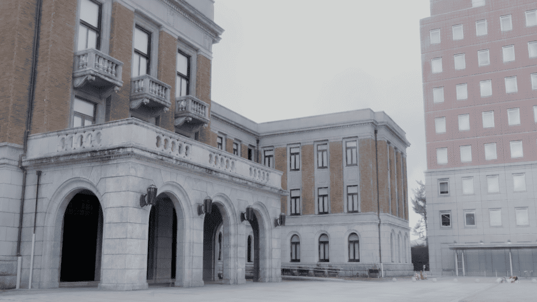 群馬県庁昭和庁舎外の空間をスキャンしたデータを元に作成しました。